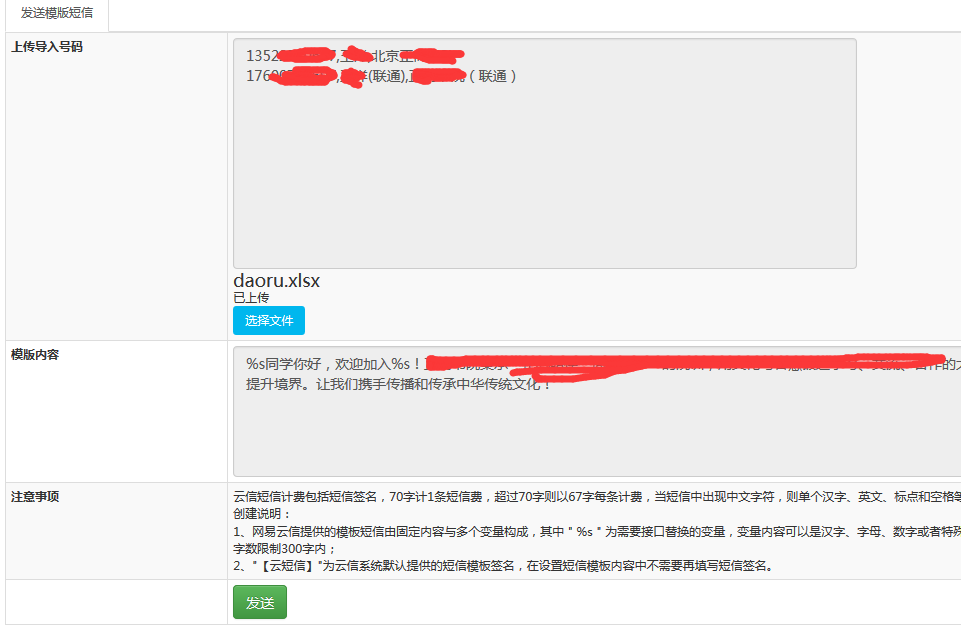13 <i class="fa fa-home"></i> 首页 > 短信发送 > 发送模版短信